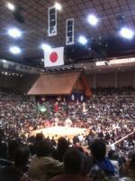 4人でマス席にキュッと納まって、満員御礼の九州場所を堪能!