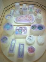 割り出して磨き、色とりどりの作品が仕上がっていく。