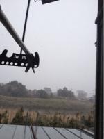 昨夜にまさかの雪が降って、ドサっと屋根から落ちる音がする。