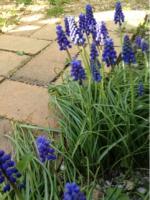 大量の洗濯物が春風でハタハタ、庭先にはムスカリが咲いた。