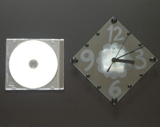 | 時刻の所には小さなガラスを接着。 | 自分だけのデザインで制作。 | CDケースと比べるとこれくらい。 |