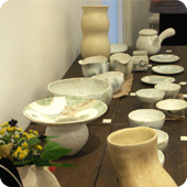 手捻り(てびねり)がほとんどです。私には手捻りの方が、自分の作りたい形や柔らか さ、強さが出しやすいですね。